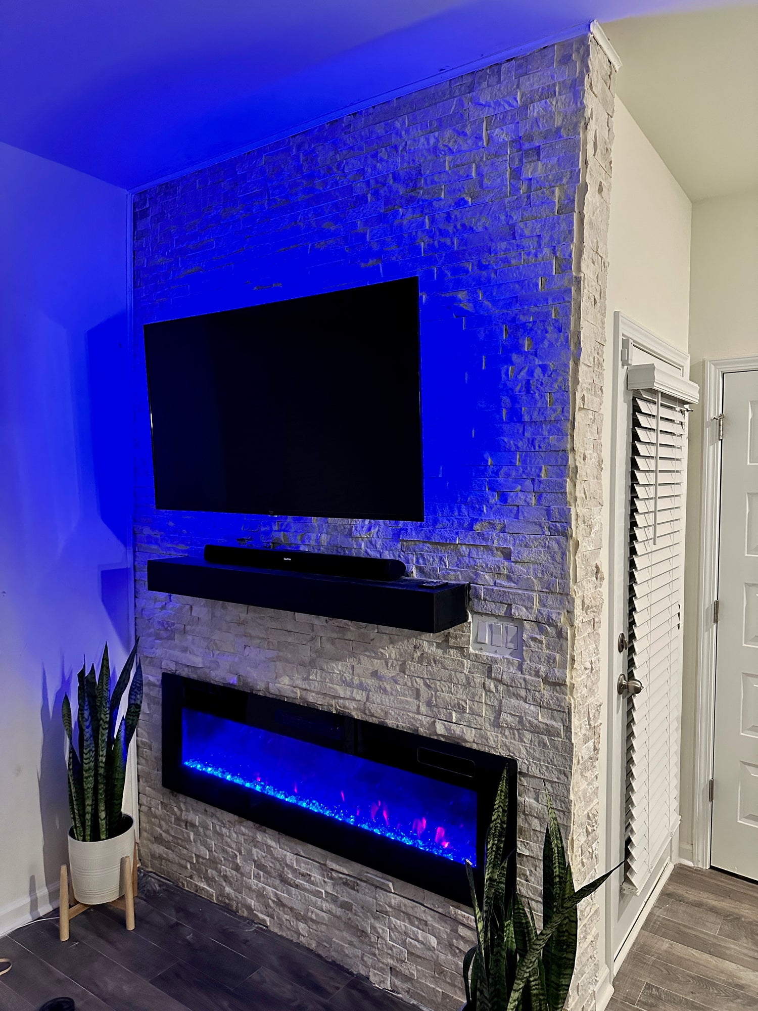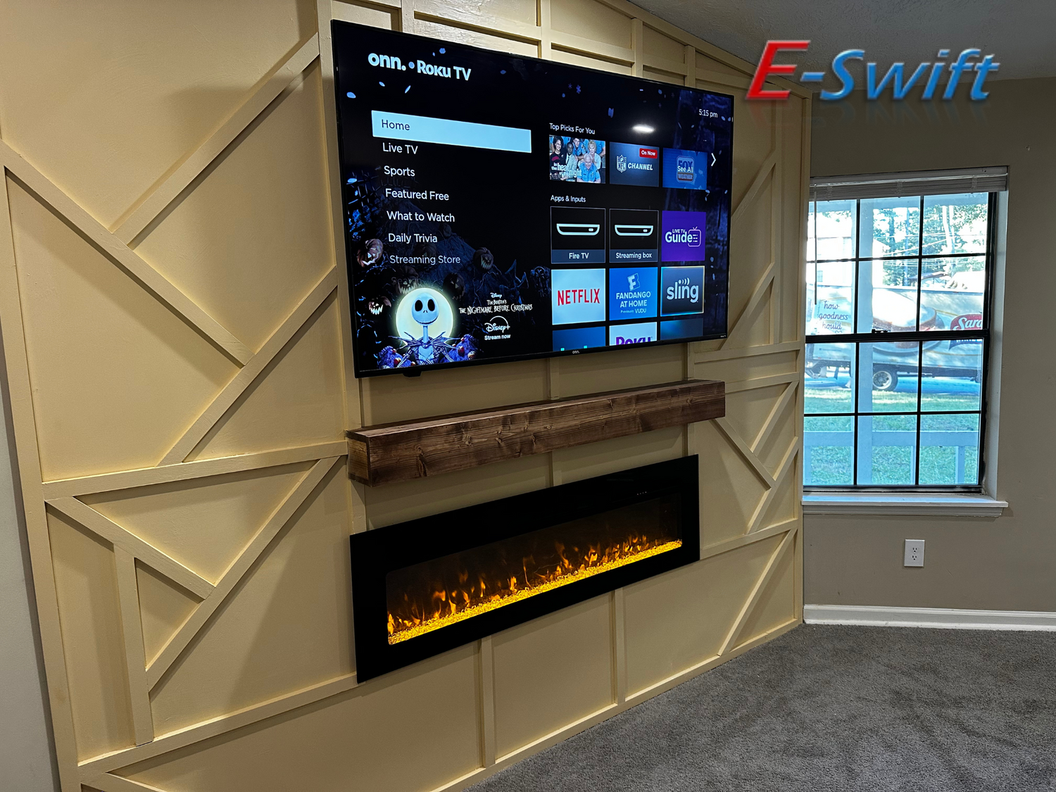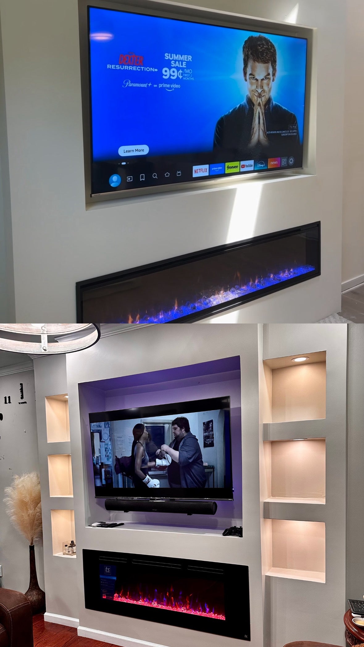 - This comes with: electric fireplace, added electric sockets, mantle, TV bracket, & all hardware needed for install